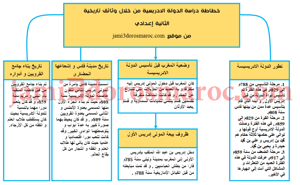 خطاطة درس دراسة الدولة الادريسية من خلال وثائق تاريخية