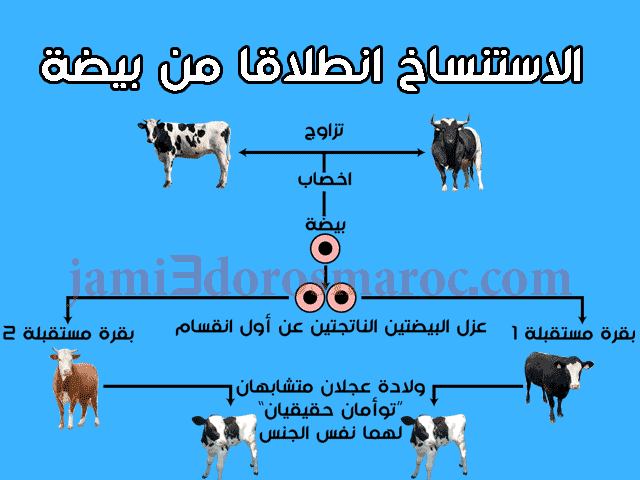 خلاصة: الاستنساخ يعطي نسخة وراثية مطابقة للكائن الأصلي.