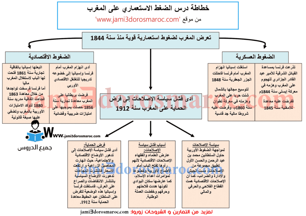 تلخيص درس الضغط الاستعماري على المغرب على شكل خطاطة