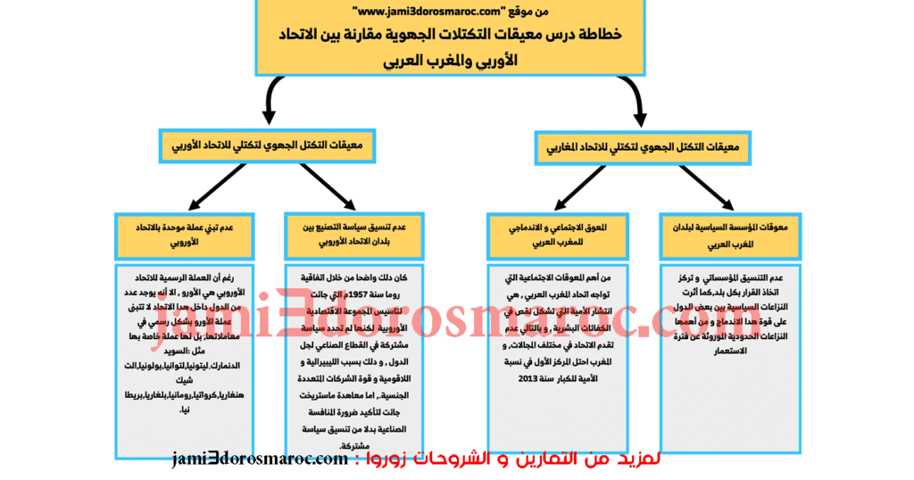 خطاطة درس معيقات التكتلات الجهوية مقارنة بين الاتحاد الأوروبي والمغرب العربي