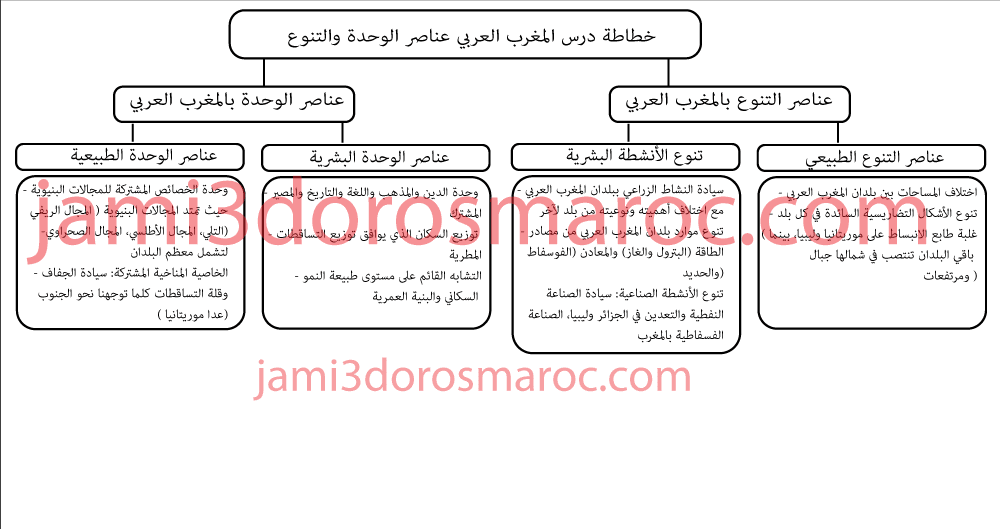خطاطة درس المغرب العربي عناصر الوحدة والتنوع