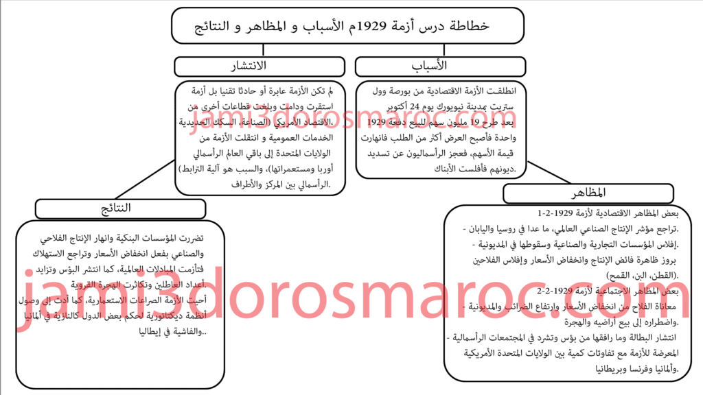 خطاطة درس أزمة 1929م الأسباب والمظاهر والنتائج
