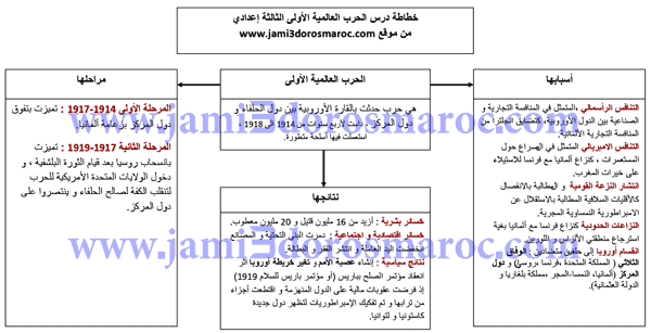 خطاطة درس الحرب العالمية الأولى الثالثة إعدادي