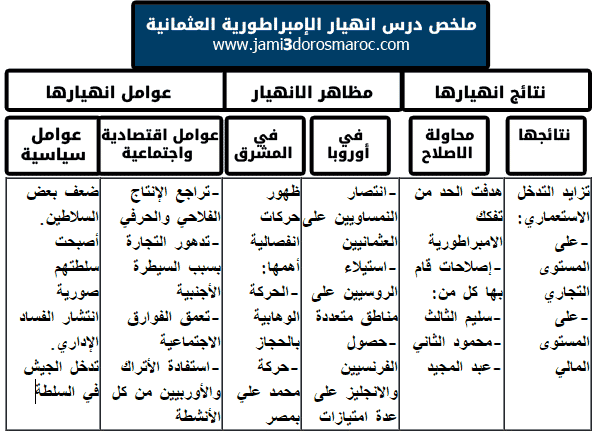 خطاطة درس انهيار الإمبراطورية العثمانية