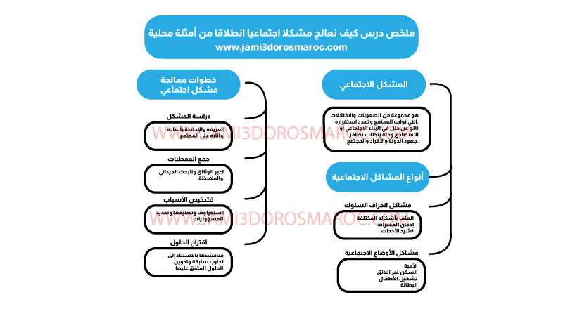 خطاطة درس كيف نعالج مشكل اجتماعي، انطلاقا من أمثلة محلية