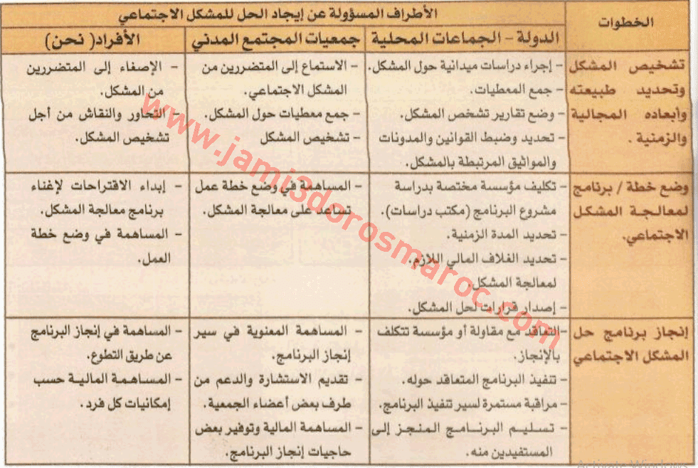 خطوات حل مشكل اجتماعي من طرف الدولة و الجمعيات و الأفراد