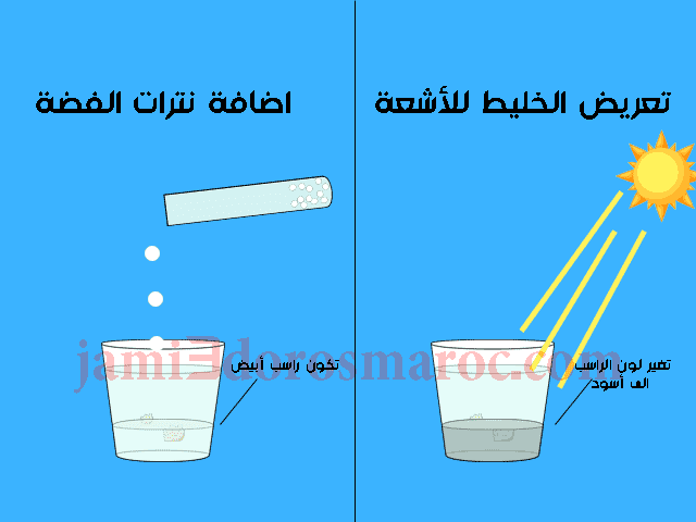 النتيجة: راسب أبيض يسود بالضوء → وجود أملاح الكلوريدات.