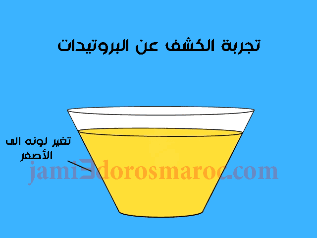 النتيجة: اللون الأصفر → وجود البروتينات.