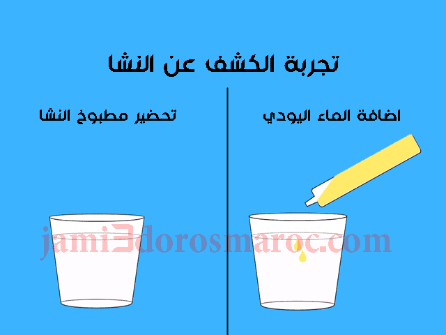 النتيجة: لون أزرق بنفسجي → وجود النشا.