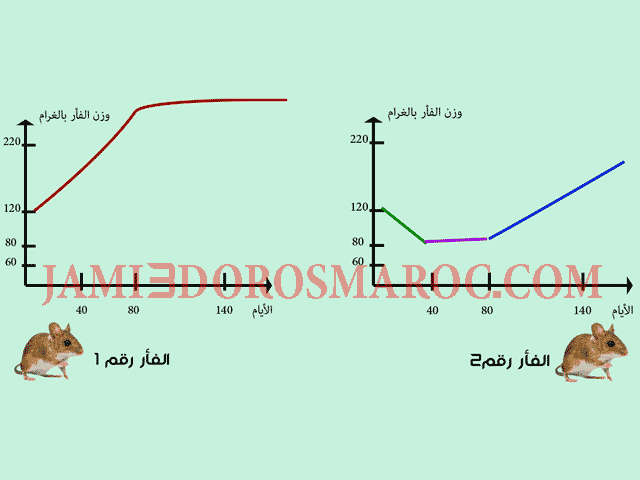 - فأر 1 تناول بروتين الحليب → ازداد وزنه طبيعيًا.