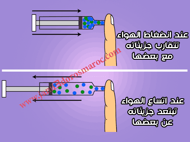 تفسير ما يحدث لجزيئات الهواء عند انضغاطه و توسعه
