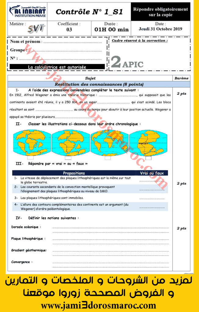 controle 1 svt 2ac semestre 1
