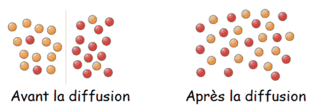 La diffusion est le passage des molécules d’un milieu où la pression et la concentration sont élevées vers un autre où elles sont plus faibles.