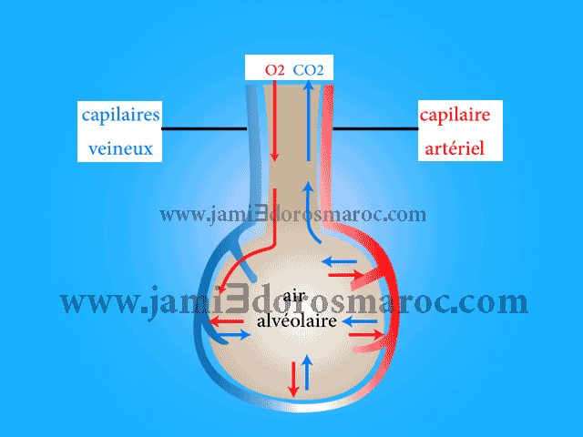 Ces échanges se réalisent grâce à la différence de pression entre les gaz du sang et ceux de l’air alvéolaire, selon le principe de diffusion.