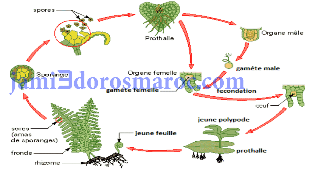 Le cycle de développement chez les plantes sans fleurs