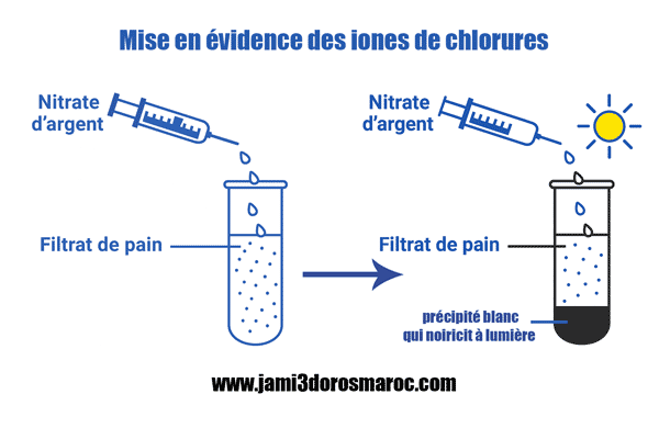 Ions chlorureNitrate d’argentPrécipité blanc noircissant